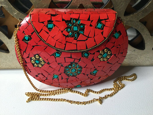 Pebbles..Red multi Metal(brass) purse