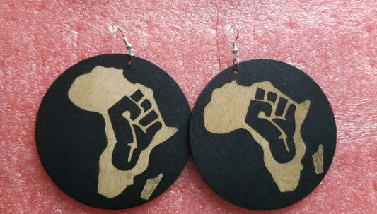 Wooden Large Africa Map and Clinched fist.Light weight errings