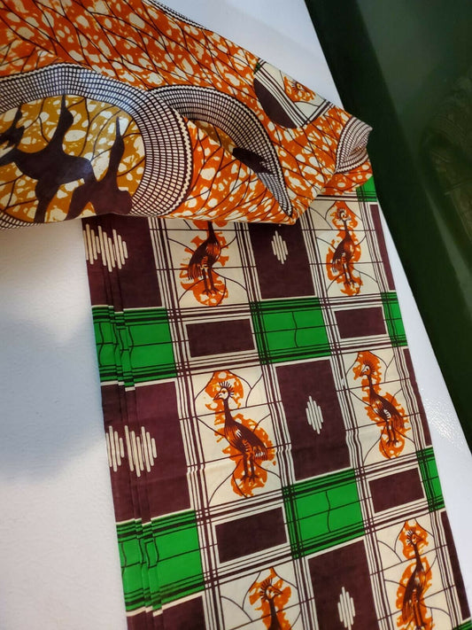 Brown MultiAfrican Print 100% Cotton Fabric ~6yards×46"~$32 SALE $25!!!!