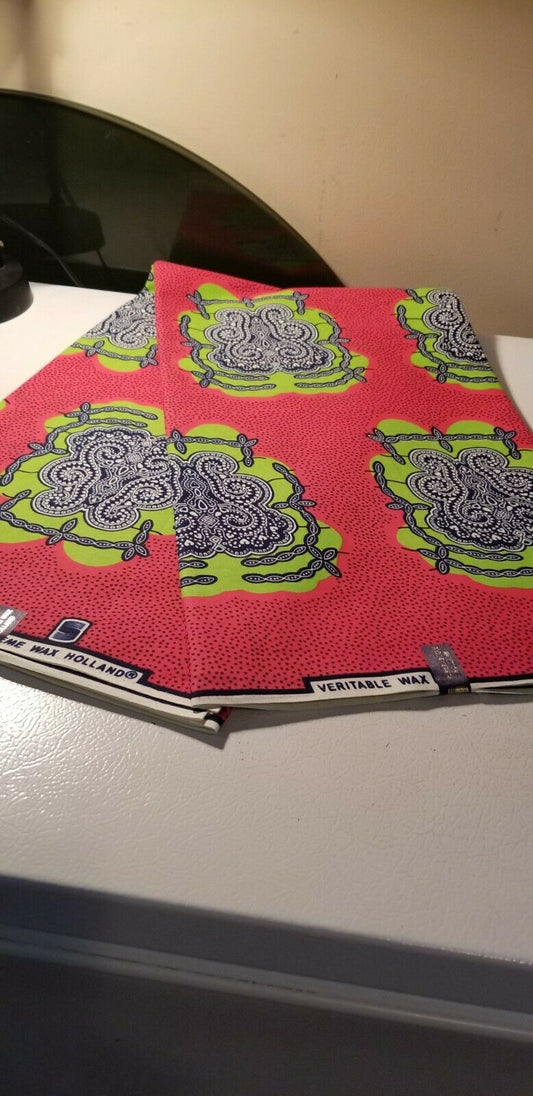 Kente Print African Wax Print 100% Cotton Fabric ~3 yds $18