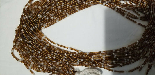 African waist beads Brown& white Dazzling ~ very Long ..45-53inches long~2pc