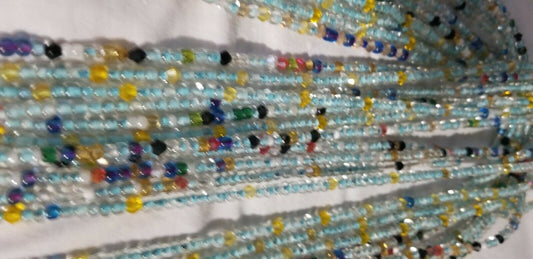 African waist beads Blue & Gold Accent Dazzling ~ very Long 45-54inches
