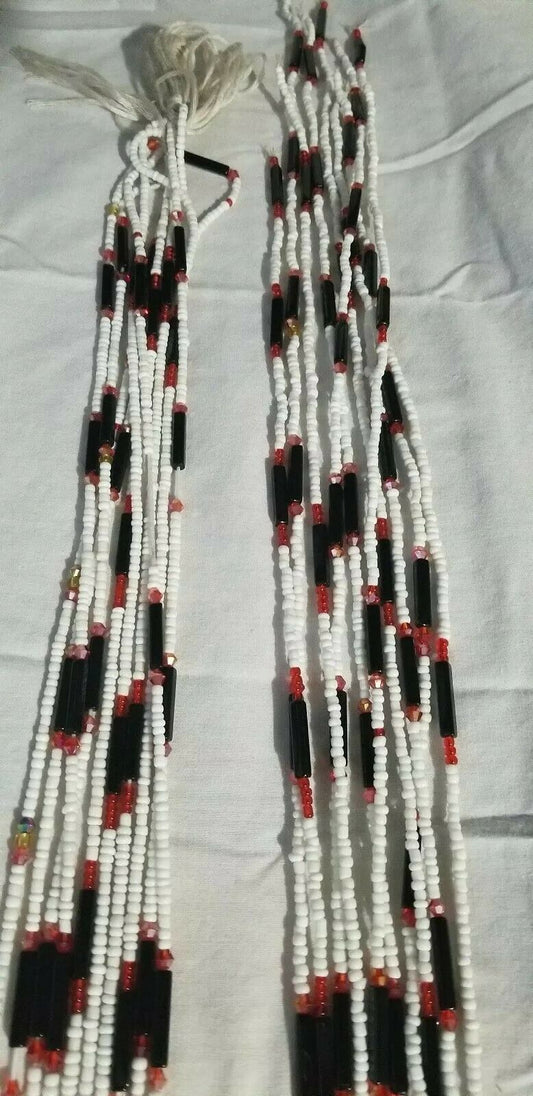 African waist beads White and Red Multi...Very Beautiful Dazzling ~ 45" to 53"
