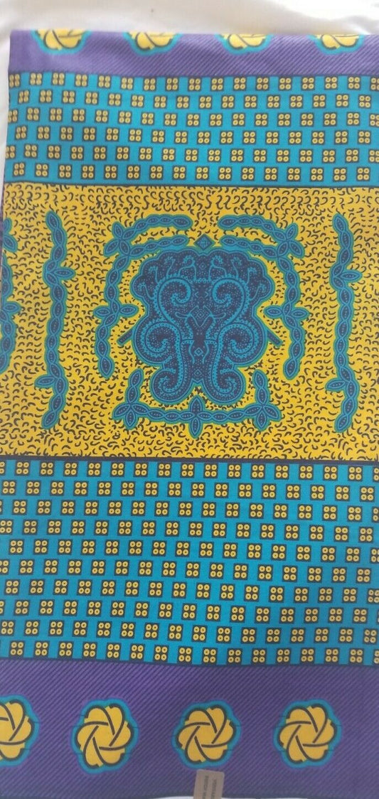 Yellow MultiAfrican Print 100% Cotton Fabric ~2YARDS and 22"(94")×46"~~$15