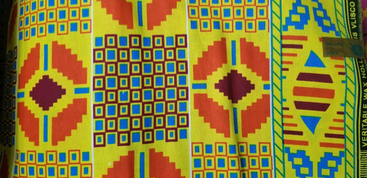 Kente Print African Wax Print 100% Cotton Fabric ~2 YARDS × 23"