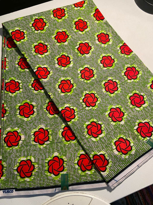 Green and Red African Print 100% Cotton 6yards bolt...SALE $25