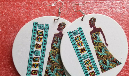 Painted lady wooden Drop Round Dangle Earrings#2~$6