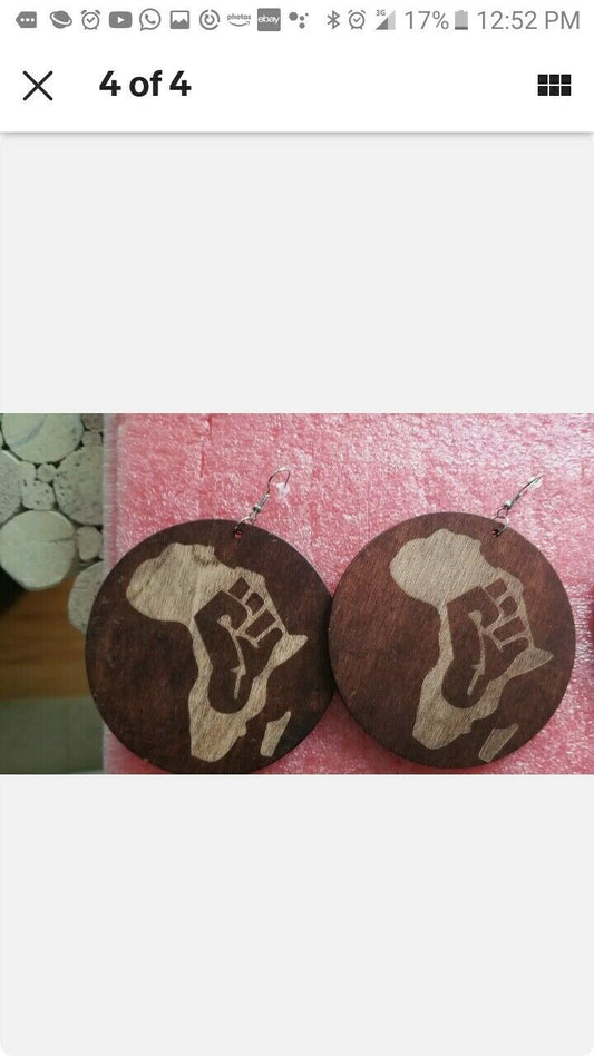 2 pairs Assorted wood Earrings Rasta Fist/Africa Map Fashion Earrings~Free Shp