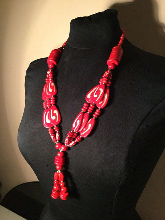 MULTI STRAND RESIN NECKLACE-Select Red Or Blue
