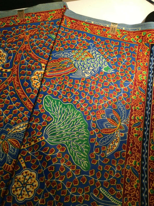Blue MULTICOLOR African Wax Print 100% Cotton Fabric ~2yards,44" INCHES