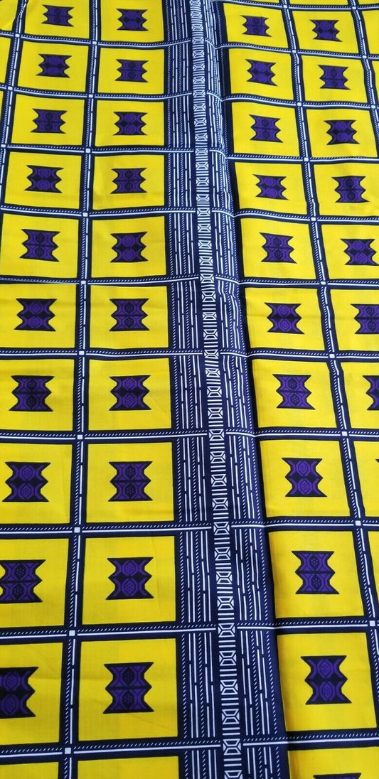 Assorted motif vibrant Yellow African Print fabric#1 ~2 yds $12