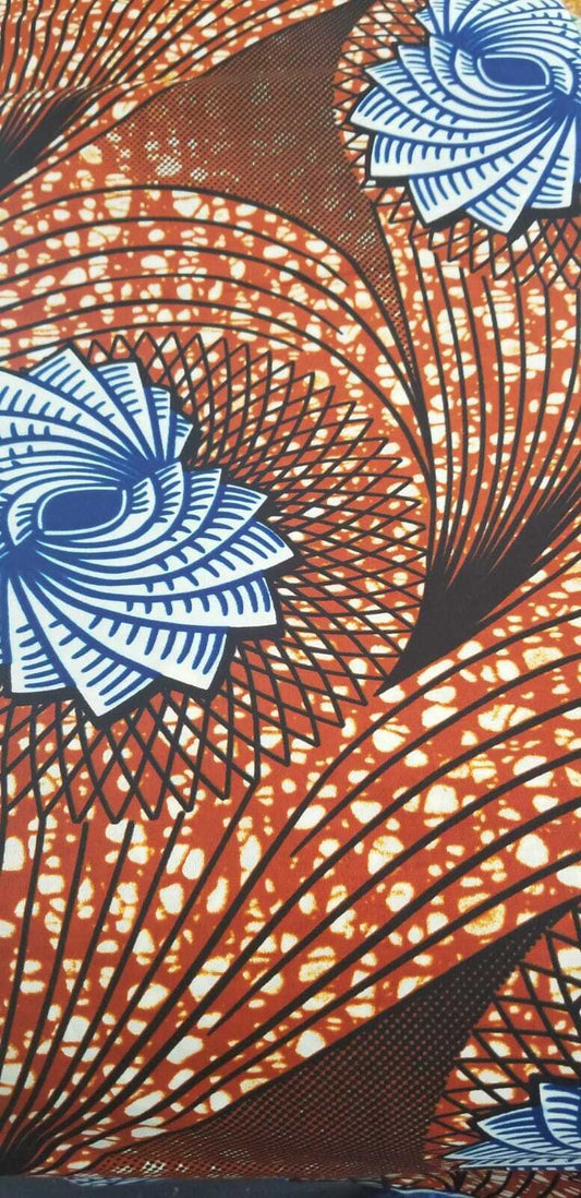 African Print Beautiful Blue & Orange Multi /ankara/ntama.3 yds $16.50