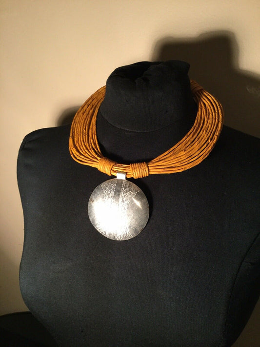 African Leather Necklace with Pendant