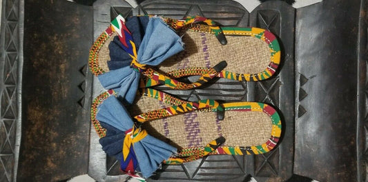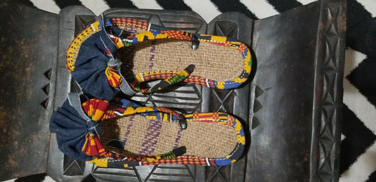 Handmade Kente Slippers with Denim Accents~Size 10.5(fits US Size 9-9.5~$25