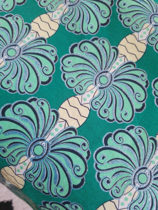 High fashion Green MULTI African Print 100% Cotton ~70in(1yd&34")×23" $11.50