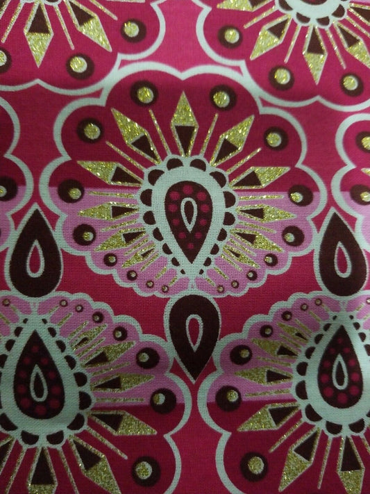 High fashion MULTICOLOR African Wax Print in Pink Fabric ~2yds×22"~$11