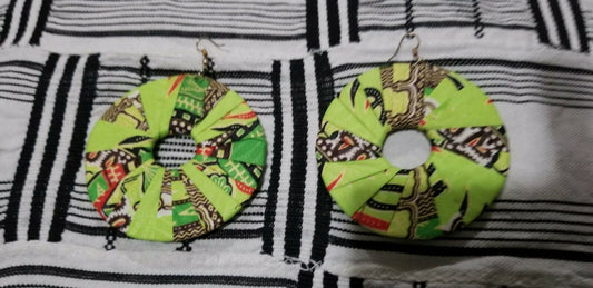 Lime Green MultiAfrican Print Round Earrings $5