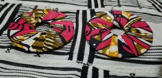 Pink Multi African Print Round Earrings $5