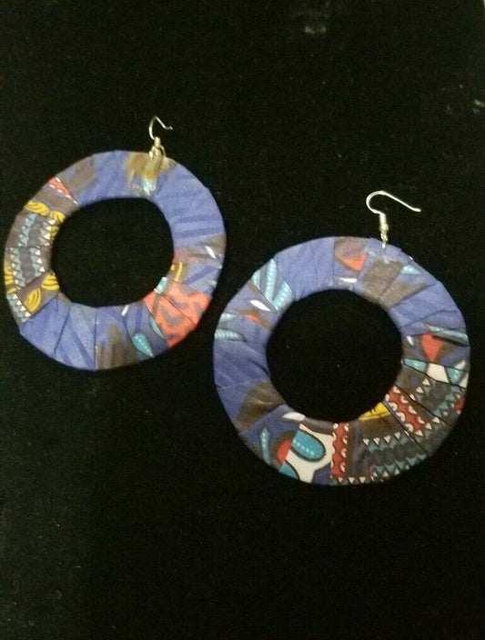 Blue Multi African Print Round Earrings $5