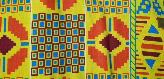 Kente Print African Wax Print 100% Cotton Fabric ~2 YARDS × 23"