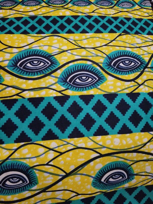 Kente Print African Wax Print 100% Cotton Fabric ~2 YARDS × 23"
