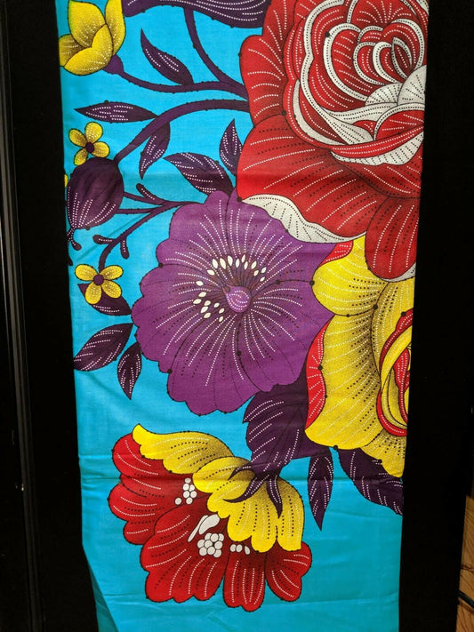 Turquoise Multi African Print 100% Cotton Fabric 2yard×46inches~ $12