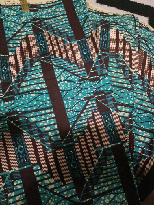 GREEN & BROWN MULTICOLOR African.Wax Print 100% Cotton Fabric 2yatds~$12
