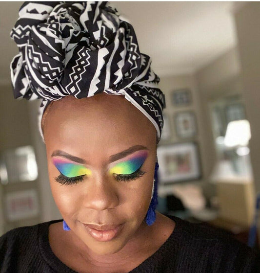 Blue and yelow multi African Print 100% Cotton F ~Headwrap/scarf $8
