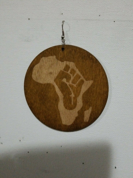 Wooden Large Africa Map and Clinched fist.Light weight errings