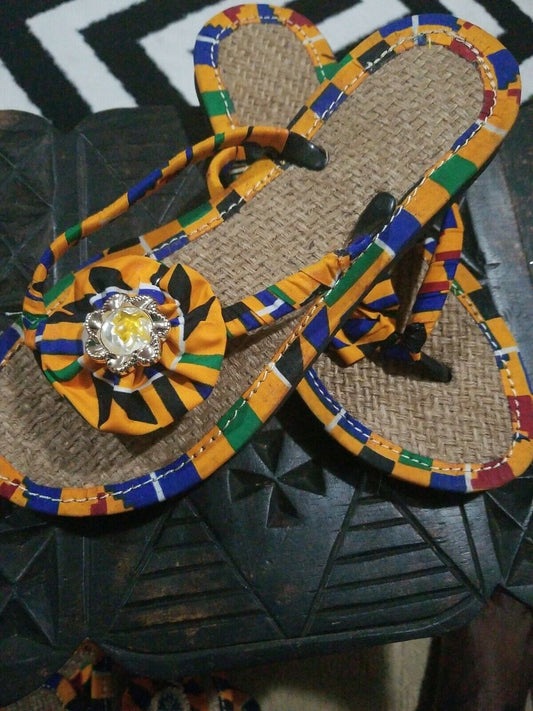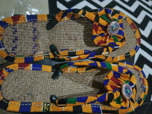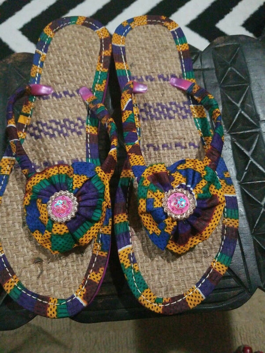 Handmade Kente Slippers with Denim Accents~Size 10.5M(Fits US9-9.5)~$25ea