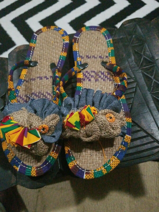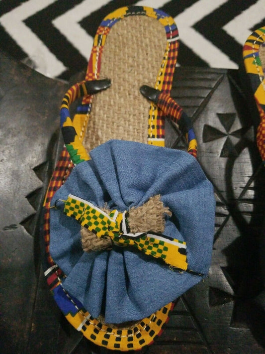 Handmade Kente Slippers with Denim Accents~Size 11M(fits US Size9.5- 10M)~$25ea