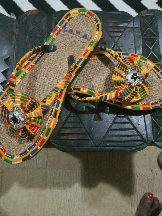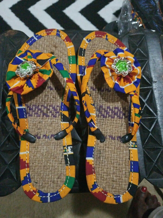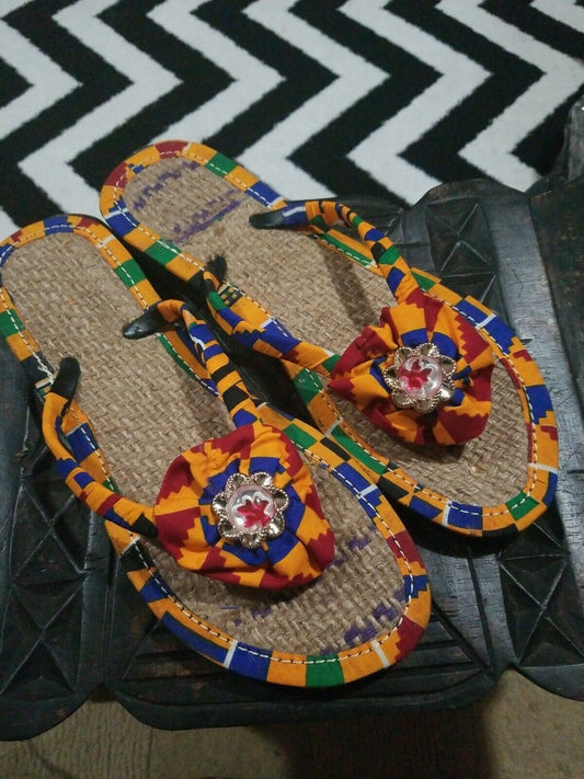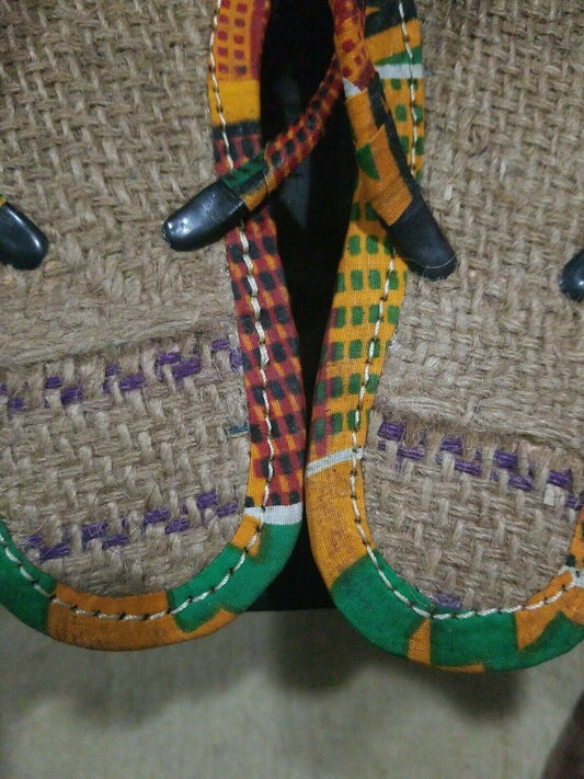 Handmade Kente Slippers with Denim Accents~Size 11M(fits US Size9.5- 10M)~$25ea
