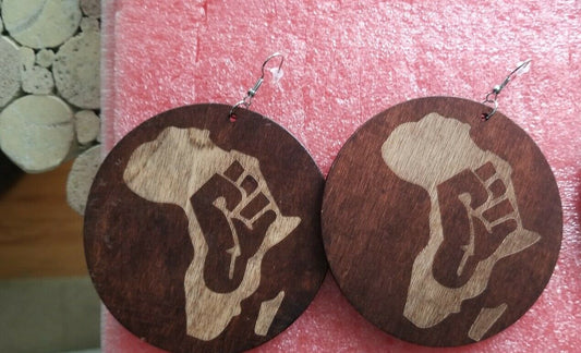 Black Power Fist Wood Women Fashion Dangle Earrings(BRN) ~$8