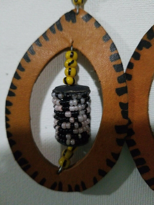 Handmade GENUINE Leather and beading Earrings $10 FREE SHIPPING