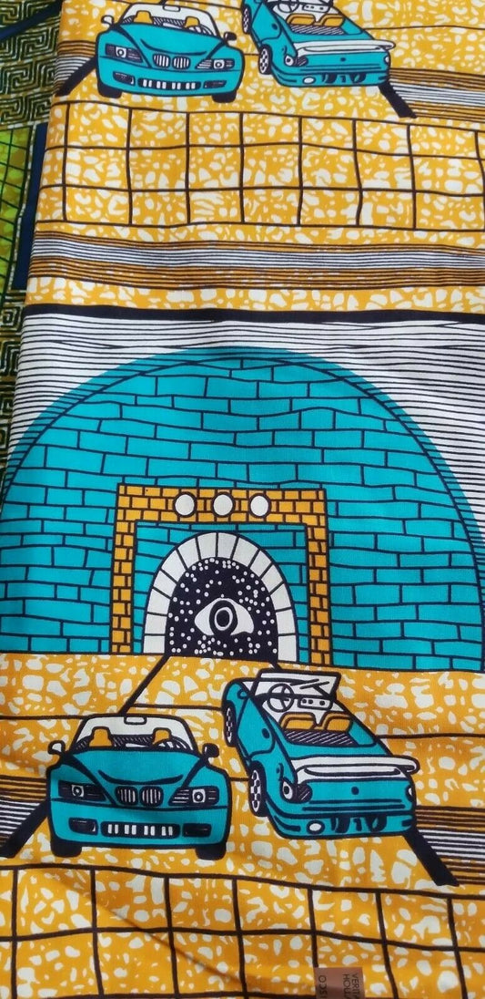 African Print Yelow multi(snails~fruitful)% Cotton Fabric 3 yds×(44 in.) ~$15.50