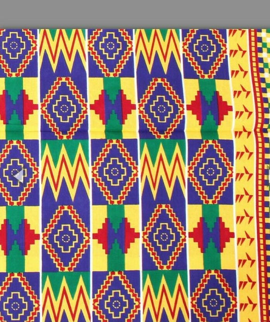 Blue Multi Authentic Kente design in Print Fabric by the yard $8
